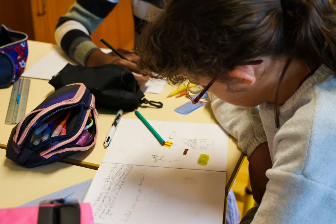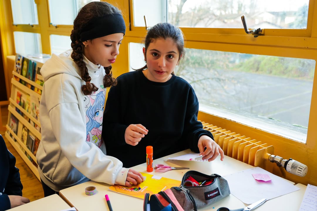 🖼️ L’artiste Oriane DUBOZ continue ses interventions auprès de 5 classes de la Ville. Ici à Rousseau, avec les 20 élèves de CM1/CM2 d’Amina BENALDJIA.