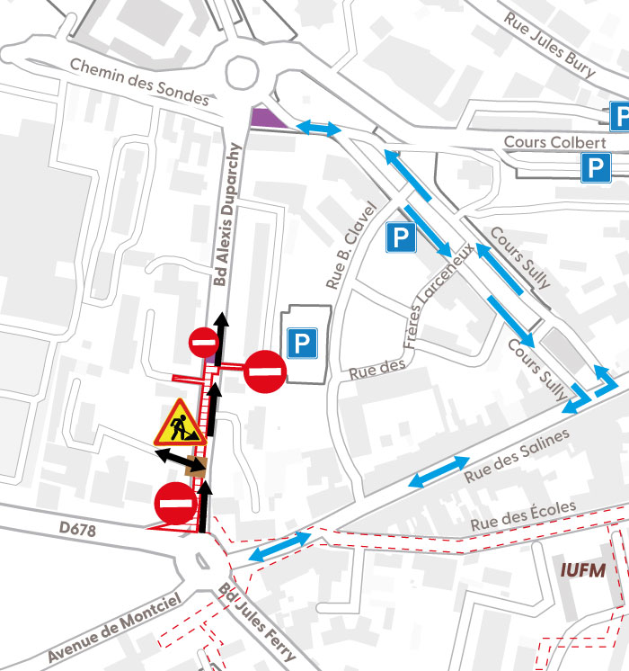 ➡️ Déviation via l’avenue du 44e RI et l’avenue Camille Prost
