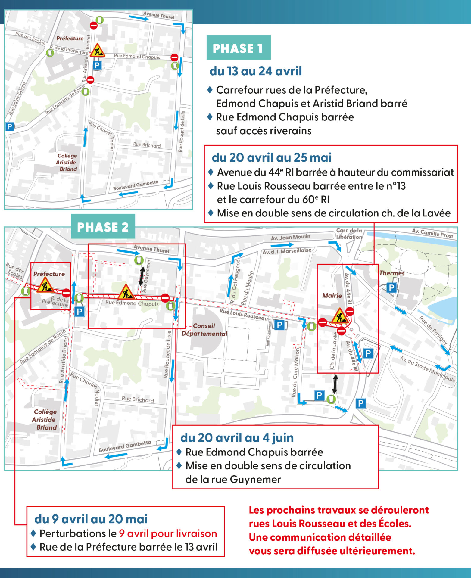 ➡️ À partir du 20 avril les rues Edmond Chapuis, Louis Rousseau ainsi que le boulevard Duparchy seront concernés.